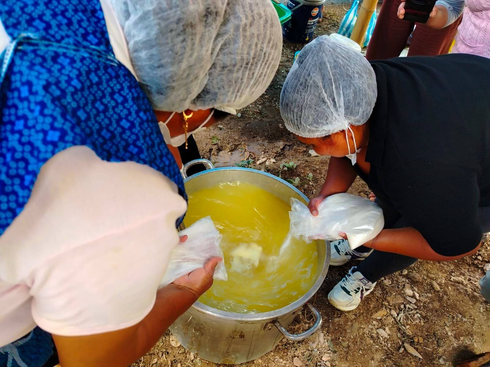 La jornada teórico-práctica estuvo dirigida por el especialista agroindustrial William Chura, quien junto a la técnico de campo Lizbeth Pacori, orientó a los beneficiarios en la correcta transformación de la fruta para generar productos de mayor valor agregado.