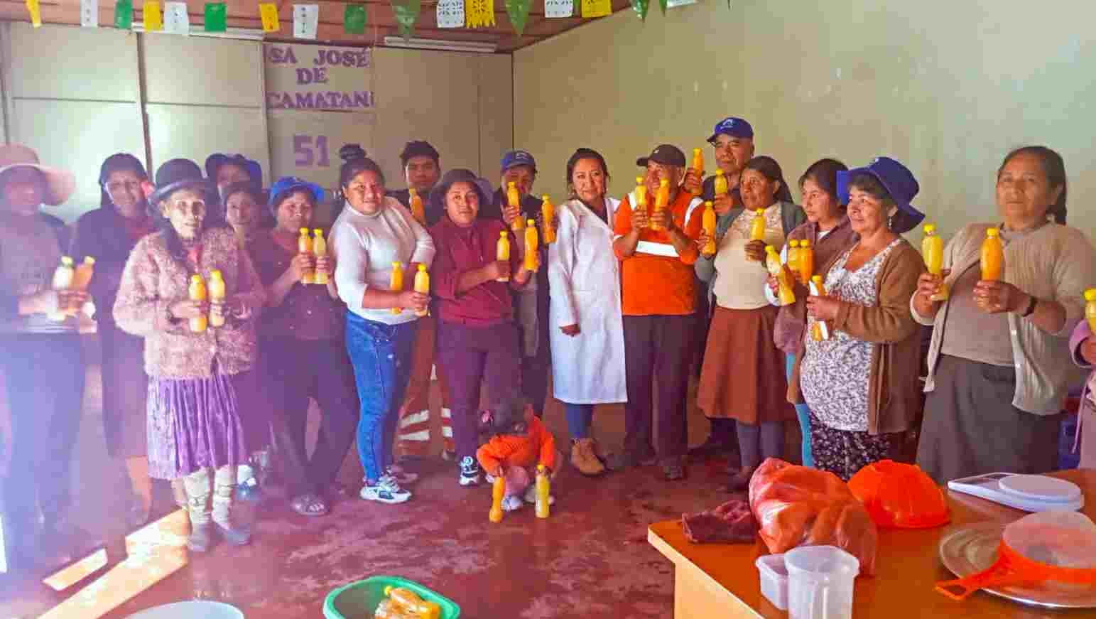 En la escuela de campo Cantani, en Ayapata, los agricultores se animaron a dar un paso más: convertir su sacha tomate y papayita andina en néctares y mermeladas listas para el mercado y el consumo familiar.