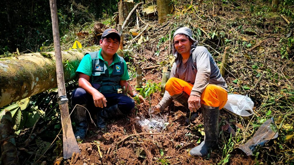 El técnico extensionista Gerson Frank Machaca acompañó a la productora durante todo el proceso, brindando asesoría directa para una adecuada instalación del cultivo, aplicando prácticas como el trazado, hoyado, abonamiento y plantación.
