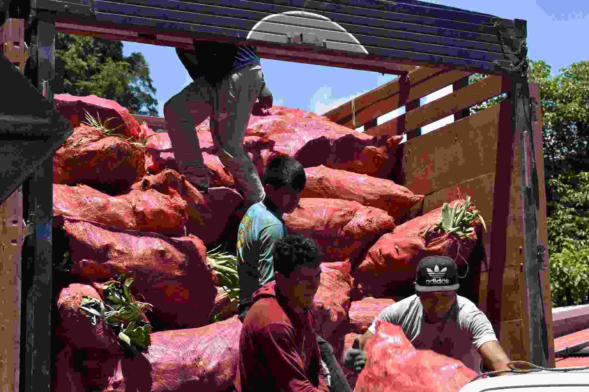 De forma coordina el Gerente Regional de Desarrollo Agrario, Renato Talavera Salas, conjuntamente con el residente y supervisor del proyecto FRUTALES, Ilde Ele Quispe Mamani y Santos Donato Ramos Copa, realizaron la recepción y entrega de hijuelos de piña con sus insumos.