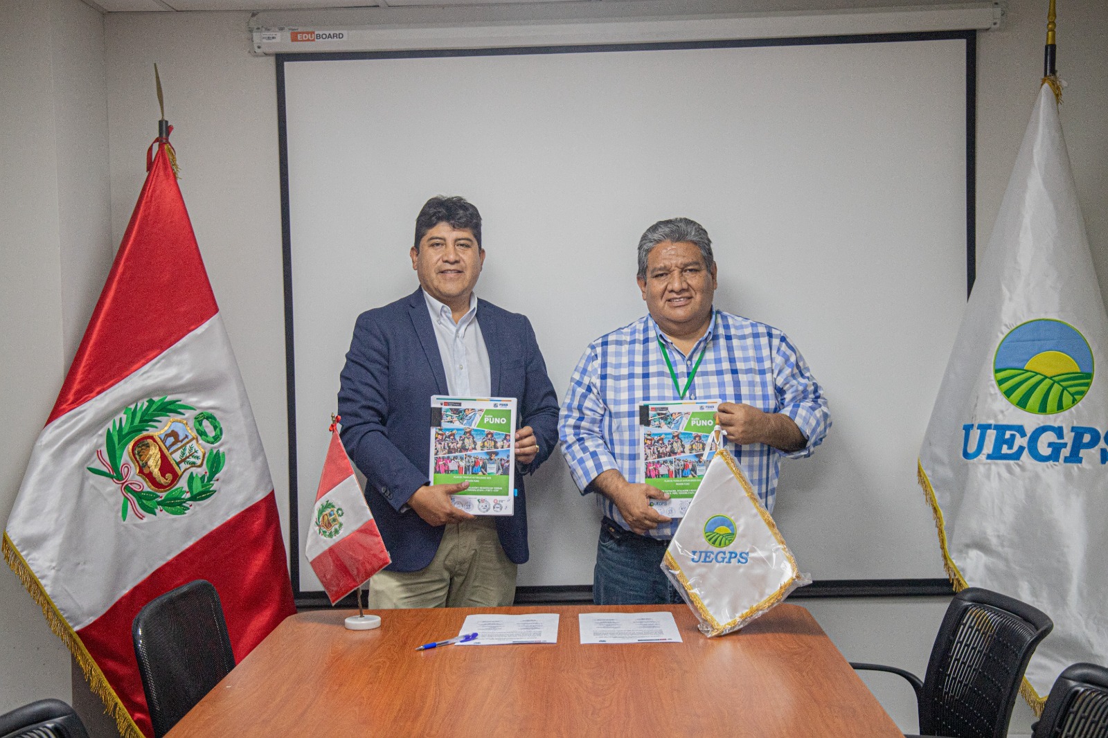 Mediante el trabajo articulado, hoy se realizo la firma de actualización del Plan de Trabajo para la formalización de predios rurales entre la Dirección Regional Agraria Puno y la Unidad Ejecutora de Gestión de proyectos Sostenibles, contando con la presencia del coordinador general del PTRT3.
