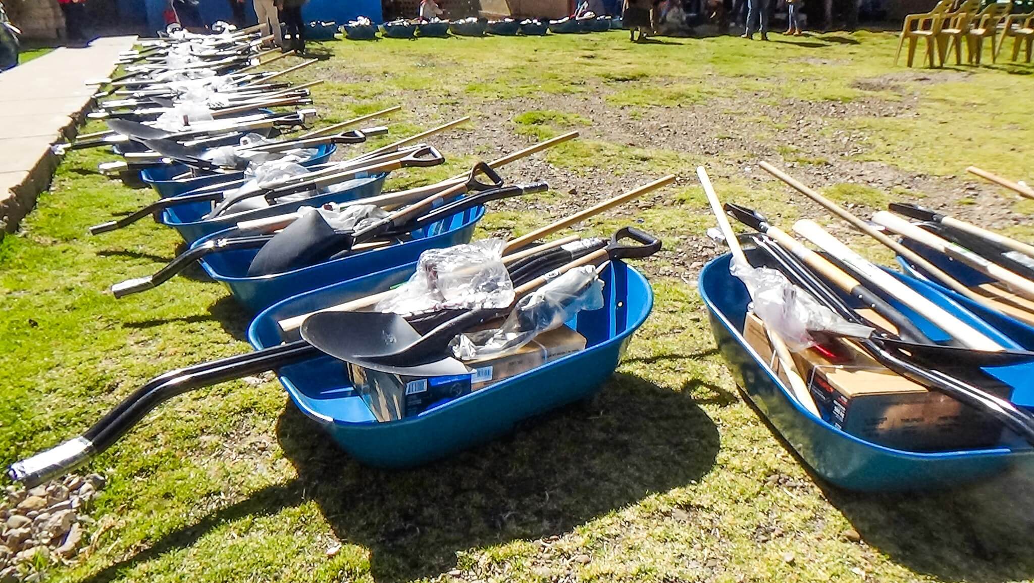 A nivel regional el proyecto beneficia a 5,737 familias de las provincias de Azángaro, Carabaya, Chucuito, El Collao, Huancané, Lampa, Melgar, Moho, Puno, San Antonio de Putina, San Román, Sandia y Yunguyo, como una primera entrega de materiales están; carretillas, picos, palas, rastrillos y comederos para animales menores.
