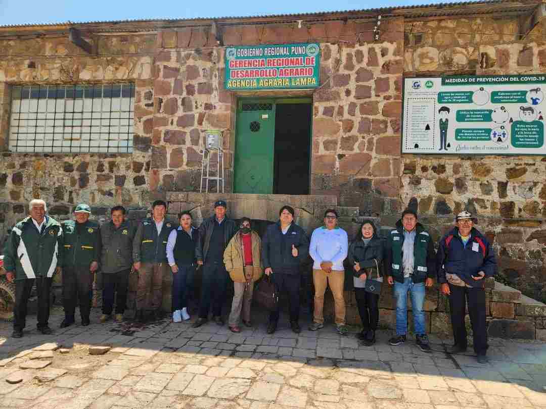 El titular de la Gerencia Regional de Desarrollo Agrario (GRDA) Renato Talavera Salas, director de la Agencia Agraria Lampa – Edwin Darío Mamani Apaza y los especialistas de la Sub Gerencia Riego Forestas y Fauna Silvestre de la GRDA y representantes de la sociedad civil de la provincia de Lampa.
