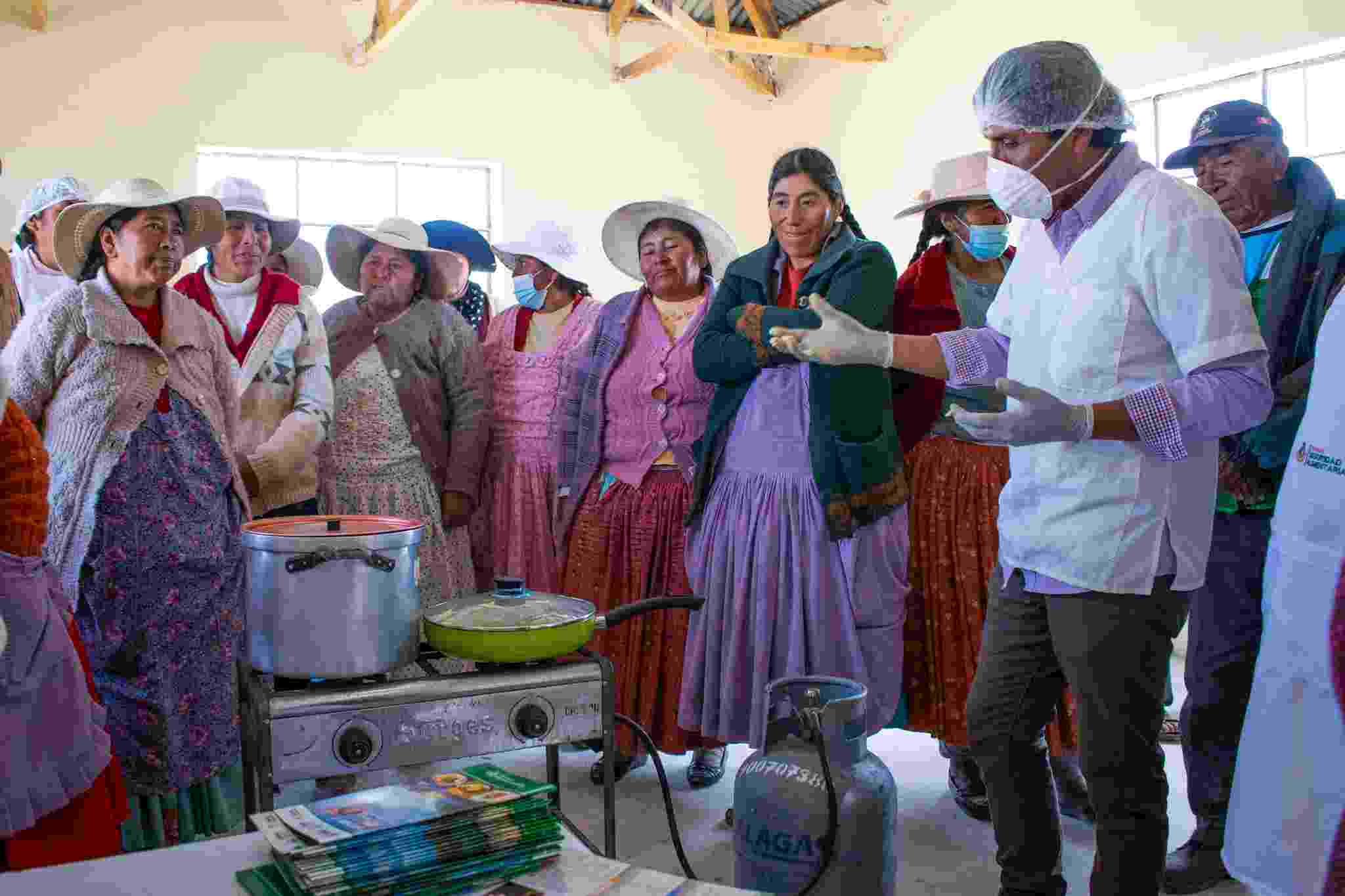 En el marco de una seguridad alimentaria integral, el componente 6 del Proyecto Seguridad Alimentaria (Promoción de menús saludables para la seguridad alimentaria) liderado por el especialista nutricional, Lic. Wilber Gutiérrez Romero en coordinación con los profesionales responsables de la zona, se aproximaron hasta la Asociación de Productores Agropecuarios, Selva Alegre Ccota del Distrito de Plateria, en donde desarrollaron la preparación demostrativa de menú saludable, el cual está compuesto con un 50% de verduras, 25% de carbohidratos y 25% de proteínas.