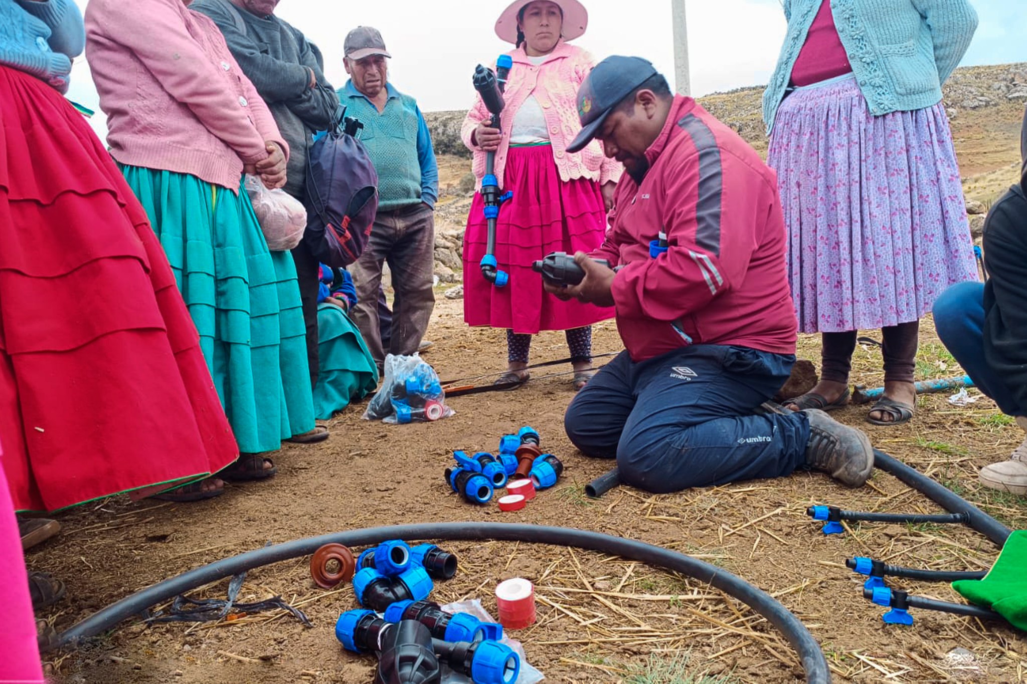 De igual manera, en la parcialidad de Kalachaca en el distrito de Chucuito, se llevó a cabo trabajos de conexión, además de una capacitación práctica a los productores sobre mantenimiento y manejo eficiente del sistema, fortaleciendo sus capacidades técnicas. En las zonas de Pucara Misawi y Cutini Huarahuarani, del distrito de Juli, se verificaron los avances de instalación de los sistemas de riego tecnificado por goteo.